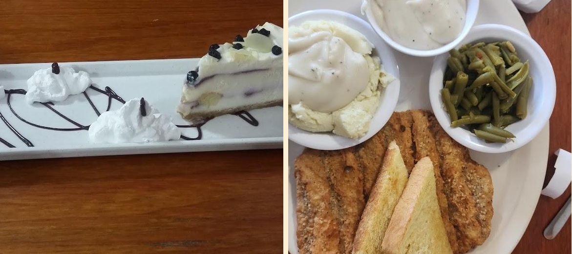 The fried green tomatoes and the Granny's Busto Burger stand out. For a light option, try the all-you-can-eat salad bar. Don't forget to end your meal with the sea salted caramel cheesecake. It's a crowd favorite.